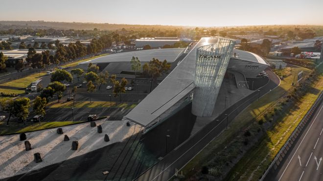 Formerly known as The Age's eye-catching newspaper print tower, this unique and distinct building has reinvented itself and is now home to the pre-delivery and parts distribution centre for Zagame Automotive Group, one of Australia's pre-eminent automotive retailers representing luxury, sports and high performance vehicles including Ferrari, Lamborghini and Rolls-Royce.